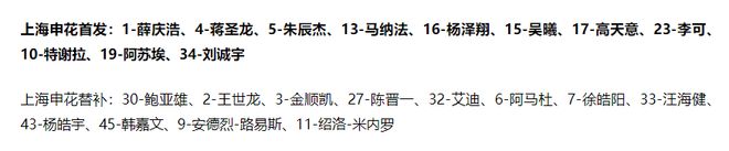 在前一个比赛日,以替补阵容出战的成都蓉城、上海海港均以0-2不敌对手,这也让上海申花肩负起了捍卫中超荣誉的重任,而上海申花也是不负众望,斯卢茨基在本场比赛派出了全主力阵容,其中,刘诚宇、吴曦、李可先发,路易斯、米内罗替补席待命。